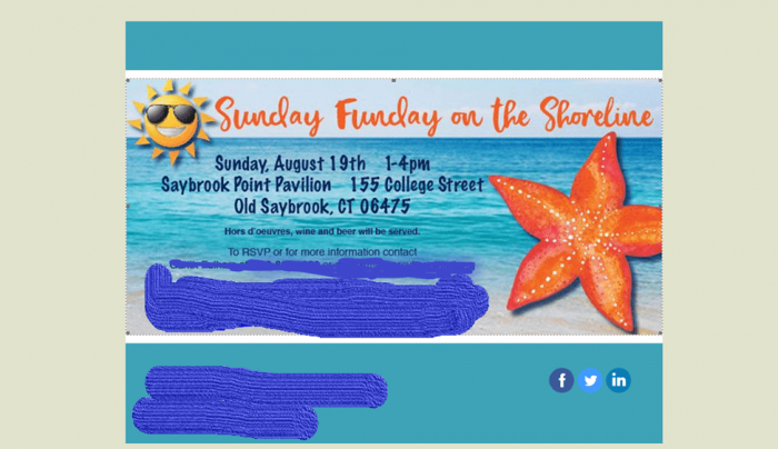 Here’s an example. Someone spent time creating a pretty graphic. But there’s no strong call to action here. And the graphic wasn’t even linked to anything. Will enough people copy the email address from this graphic and RSVP on their own?