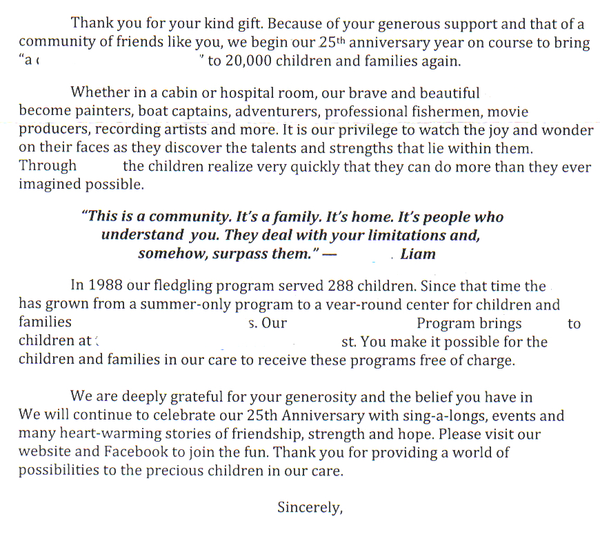 The letter’s not quite perfect. (You didn’t think I could resist, did you?) I’d change the perspective a little and give more credit to the donor. They do add a nice testimonial and paint a picture of what they do –but I’d connect that directly to the gift. It would be much more powerful.